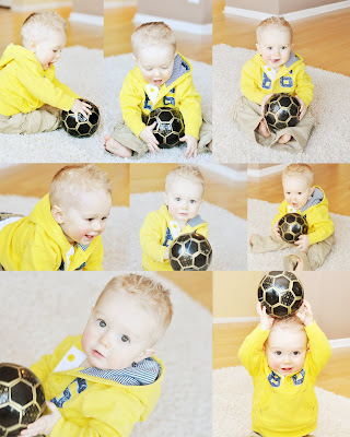 He is sooooo handsome! And so big! I can't believe he'll be one tomorrow! I hope he has a wonderful 1st birthday! And i just love all of his blonde hair :) babies grow up way too fast!!!